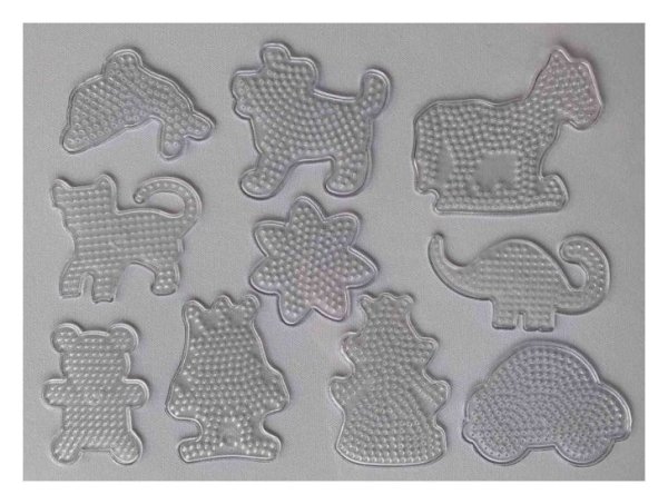 Plastové podložky sú určené na skladanie a tvorenie obrázkov zo zažehľovacích korálikov. Podložky sú priehľadné, aby pod ne bolo možné umiestniť predlohu (nie je súčasťou balenia). Balenie obsahuje: 10ks podložiek v tvare postáv, zvieratiek a vecí. Upozornenie: Korálky nie sú súčasťou balenia, slúžia na ilustráciu.