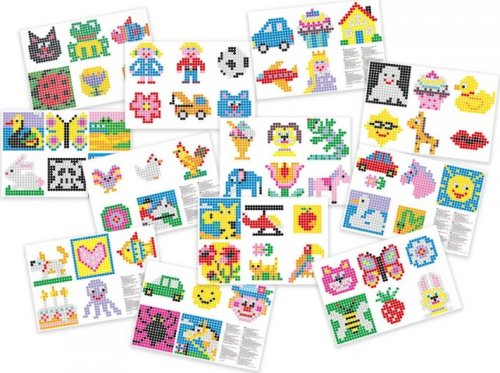 Veľká rozmanitosť vzorov a obtiažnosti. 67 obrázkov. Ľahko umiestnite pod priehľadné podložky na korálky XL.
