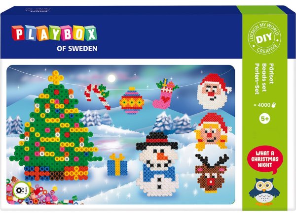 Súprava zažehľovacích korálikov značky Playbox na výrobu obrázkov s vianočnou tematikou .