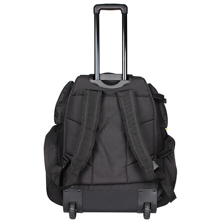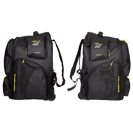 Fischer Backpack JR S25 je praktický batoh pre juniorských hokejových hráčov všetkých výkonnostných úrovní – od úplných začiatočníkov až pre profesionálnych hráčov. pasy. Taška je vyrobená z odolného 600D Polyesteru, jej rozmery sú približne 41 x 41 x 53 cm, plastové kolieska majú priemer 9 cm a má spevnené dno. zips pre hokejky, nastaviteľné chrbtové popruhy a ručný popruh pre ľahkú manipuláciu.