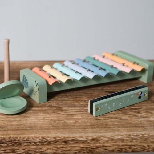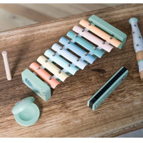 • multifunkčná hudobná sada z dreva v jemných farbách