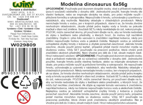 Modelína dinosaurus 6x56g. 6 farebných modelín, 8 vykrajovačov, 6 formičiek.