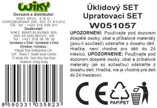 Upratovací set. Obsah balenia - metlička, vedierko, metlička s lopatkou, postrekovač, mop, stierka, a ďalšie príslušenstvo.