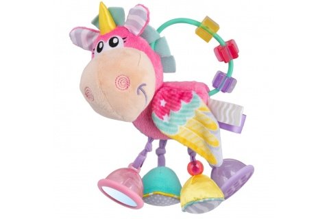 Vaše dieťa si zamiluje naša ružová hrkálka v tvare jednorožca. Tento očarujúci a interaktívny jednorožec nielenže rozveselí každé bábätko, ale taktiež stimuluje jeho zmyslový vývoj. Deti od 3 mesiacov budú nadšené z farebných korálikov, zvukov hrkálky, rôznorodých textúr a tvarov, ktoré ponúka. Hrkálka je navrhnutá tak, aby podporovala jemnú motoriku vášho dieťaťa. Drobná ručička bude objavovať rôzne korálky, hrkálky a textúry, čo napomôže pri rozvoji koordinácie ruka-oko a jemných motorických zručností. Vek 3m+