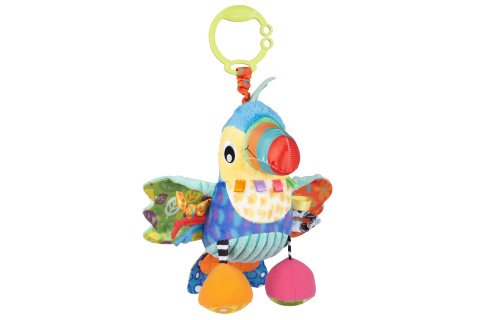 Playgro – Tukan Tamika je farebná a zábavná hračka pre bábätká, ktorá stimuluje zmysly a podporuje rozvoj. Obsahuje pískatko a hebký farebný zobák, ktoré rozvíjajú sluch a podnecujú zvedavosť. Vďaka hviezdicovým klipom ju možno ľahko pripnúť na kočík, autosedačku alebo postieľku. Mäkké nožičky, ušká, krídla a uchopiteľné telíčko podporujú hmat a jemnú motoriku. Čiernobiele kontrastné vzory a živé farby stimulujú zrakový vývoj. Hračka je bezpečná a spĺňa vysoké štandardy kvality. Tamika je veselá kamarátka, ktorá zabaví, rozvíja a spestrí každý deň.