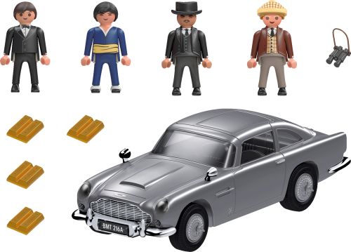 James Bond Aston Martin DB5 – Goldfinger Edition s autentickými vychytávkami vrátane vystreľovacieho sedadla spolujazdca a otočných poznávacích značiek, ktoré sa prvýkrát objavili v Goldfingerovi (1964). Ďalej sa objavia James Bond, Auric Goldfinger, Oddjob a ďalší Goldfingerov stúpenec. Volá sa Bond, James Bond a je to najslávnejší svetový tajný agent. Už takmer šesťdesiat rokov baví dobrodružstvo 007 fanúšikov po celom svete. Každý nový prípad je akčným dobrodružstvom poháňaným úžasnými kaskadérskymi kúskami, dychberúcimi automobilovými naháňačkami a samozrejme všetkými najnovšími vychytávkami. Vo svojom treťom vystúpení na plátne vo filme Goldfinger (1964) James Bond vôbec po prvýkrát riadi kultový Aston Martin DB5.