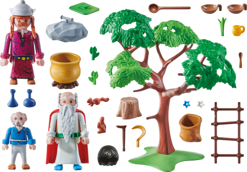 Panoramix je ctihodný dedinský druid, ktorý varí kúzelné lektvary. Jeho špecialitou je kúzelný lektvar, ktorý dáva nadľudskú silu. Panoramix má však v rukáve aj ďalšie recepty. Pre svoje zmesi druid hádže bylinky a rôzne prísady do veľkého kúzelného kotla. Dnes mu pomáha dedinský starec Geriatrix. Rímsky špeh Caligula Minus, ktorý sa do galskej dediny vplížil pod menom Caligulaminix, smie ochutnať prvú lyžicu čerstvo uvareného kúzelného lektvaru. Lektvar funguje, Caligulaminix dokáže okamžite zdvihnúť bez námahy jednou rukou obrovský kameň. Čo sa však stane, keď účinok vyprchá a Galovia špeha odhalia?