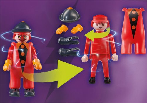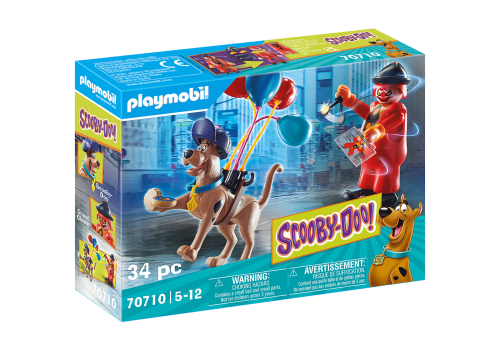 Scooby Doo vyráža za prípadom do Cirkusu. Scooby sa prestrojil za predajcu balónikov a snaží sa odhaliť pravú identitu ducha klauna. Tento zákerný duch prenasleduje cirkus aj potom, čo bol pristihnutý pri krádeži. Je potrebné ho zastaviť. Aby ste odhalili skutočnú identitu ducha, musíte mu zobrať jeho kartu, ktorú je možné preskúmať pomocou čítačky v SCOOBY-DOO! Mystery Machine™ 70286 alebo SCOOBY-DOO! Dobrodružstvo v Strašidelnom dome™ 70361. Balenie obsahuje: 1x figúrku Scooby, 1x figúrku duch klauna, kartu duchov, balóniky a ďalšie doplnky Playmobil sú stavebnice pre deti rôznych vekových kategórií, ktoré sú tematicky zamerané a majú mnoho prepracovaných doplnkov. Dieliky sú hygienické, ľahko umývateľné a nepúšťajú farbu. Stavebnice Playmobil podnecujú fantáziu, kreativitu a podporujú detský vývoj. Vhodné pre deti od 5 rokov. Téma: PLAYMOBIL® SCOOBY DOO!