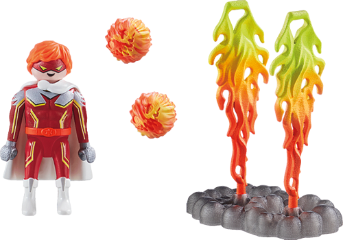 Oheň je superhrdinov živel. Tento superhrdina ovláda plamene a využíva svoje mocné schopnosti k dobru. Ak je niekto v núdzi, superhrdina vzlietne do vzduchu pomocou svojich plameňov a letí na pomoc.