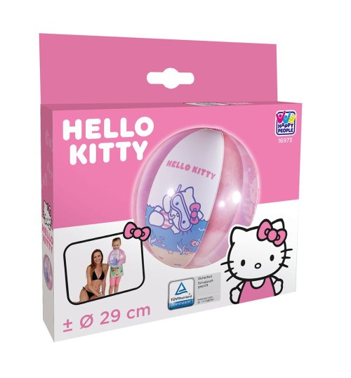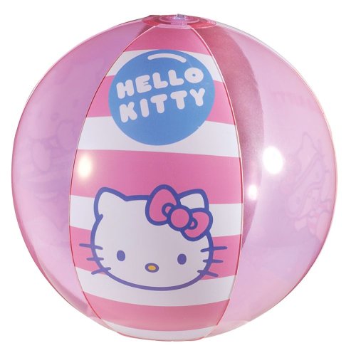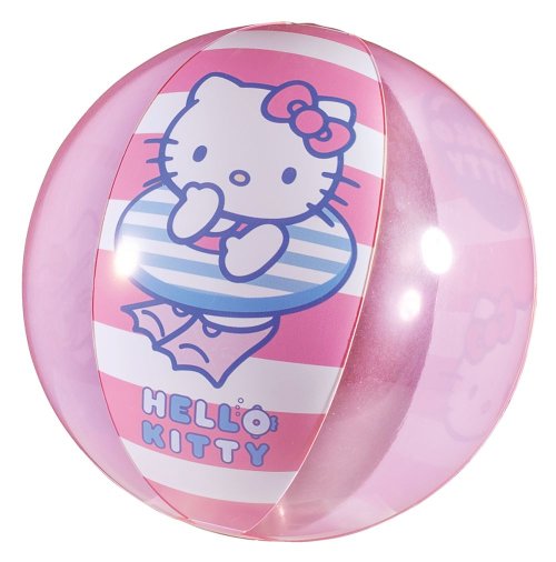Plážová lopta Hello Kitty, nafúknutá cca. 29 cm, vyfúknutý cca. 40 cm,3 panely transparentné ružová,3 panely s dizajnom