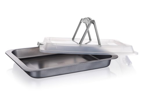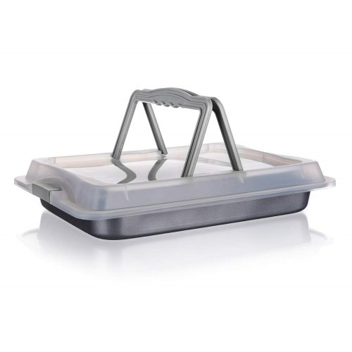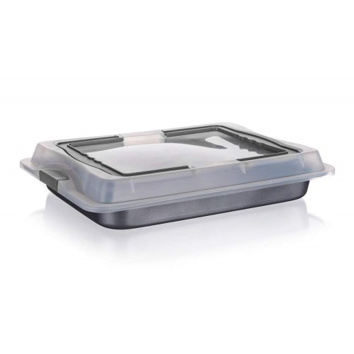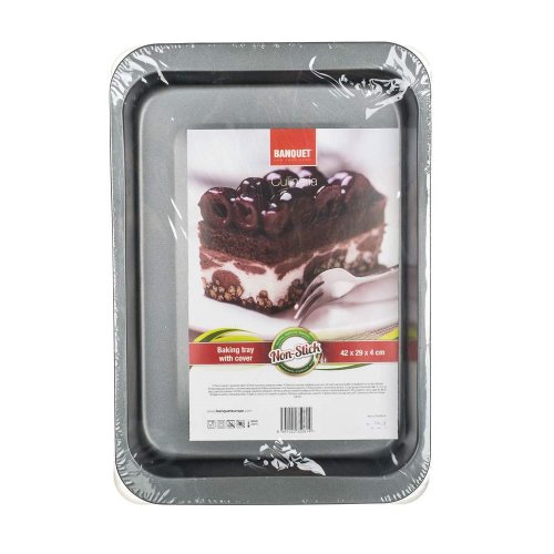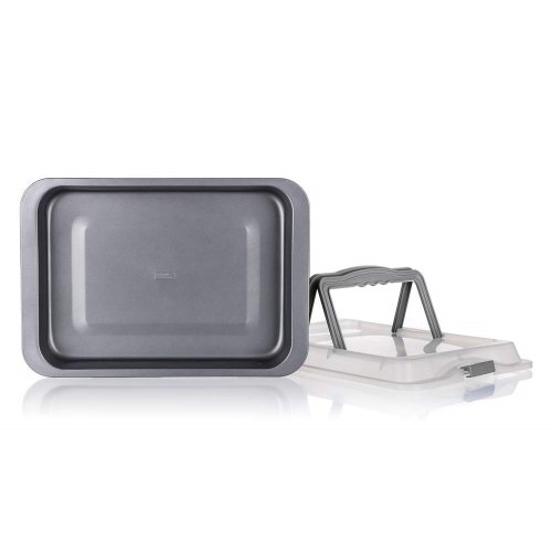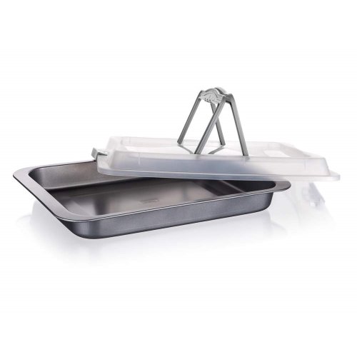 Plech na pečenie z uhlíkovej ocele s nepriľnavým povrchom, plastové veko.