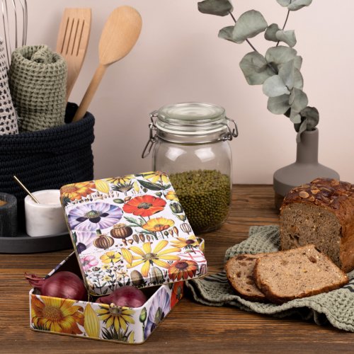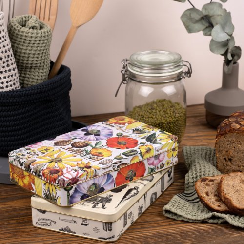 Štýlové dóza Lúčne kvety z kolekcie Kataríny Winterovej. Táto dóza má všestranné praktické využitie. Môžete do nej uložiť vianočné pečivo či iné potraviny, najrôznejšie poklady alebo drobnosti. Dóza je vyrobená zo 100% ocele s cínovou vrstvou.