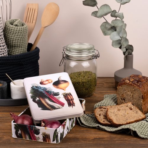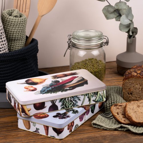 Štýlové dóza Zelenina inšpirovaná obľúbeným Zábavným kalendárom Kataríny Winterovej. Táto dóza má všestranné praktické využitie. Môžete do nej uložiť vianočné pečivo či iné potraviny, najrôznejšie poklady alebo drobnosti. Dóza je vyrobená zo 100% ocele s cínovou vrstvou.
