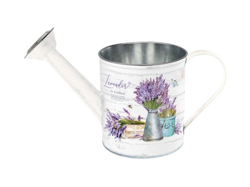 Plechová kanvička s motívom levandule, ktorá prinesie do vášho domova vôňu Provence. Jej rozmery sú 300x115x145mm.