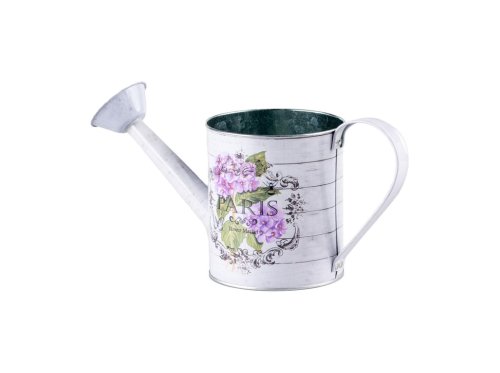 Plechová kanvička s elegantným motívom Paris, ideálna pre romantické a vintage interiéry. Jej rozmery sú 300x115x145mm.