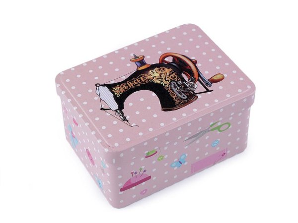Plechovú krabičku využijete na drobnosti. Jej krajčírsky dizajn ju predurčuje na uloženie šijacích potrieb ako sú gombíky, ihly, nite, skrátka všetky drobnosti, ktoré krajčírka potrebuje. Veko je odklápacie.