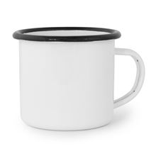 Plechový hrnček smalt-potlač, 330 ml, biely, čierny lem