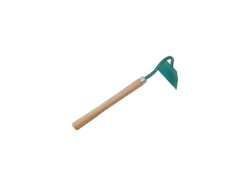 Ručná plečka vysoká na odstraňovanie buriny a kyprenie pôdy na zeleninovom záhone okolo rastlín.
