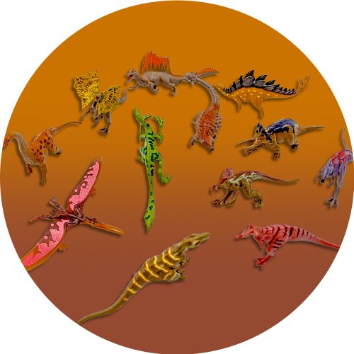 Modely dinosaurov: K sade sú priložené malé figúrky dinosaurov, ktoré zodpovedajú tým premietaným. Deti si tak môžu dinosaurami ohmatať, hrať sa s nimi a porovnávať ich s obrázkami.