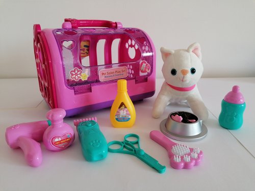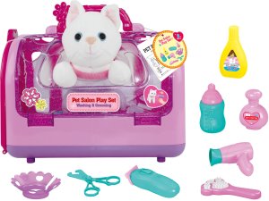 Táto sada PLEJO Kadernícky salón pre miláčikov je splneným snom pre každú malú štylistku alebo veterinárku, ktorá sa rada stará o zvieratká. Všetko je úhľadne uložené v roztomilom, ružovom prepravnom boxíku, ktorý uľahčuje prenášanie a upratovanie.
