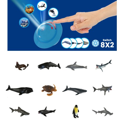 Modely morských zvieratiek: K sade sú priložené aj malé figúrky zvieratiek, ktoré sa premietajú na plátno. Deti si tak môžu zvieratká ohmatať, hrať sa s nimi a porovnávať ich s obrázkami na stene.