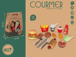 PLEJO Obedový set - Hamburger je zábavná a interaktívna sada plastových imitácií jedla, ktorá deťom umožňuje hrať sa na prípravu a podávanie hamburgerov. Táto sada je skvelým doplnkom do detskej kuchynky a podporuje kreatívnu hru a rozvoj jemnej motoriky.