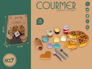 Obedový set je ideálny pre hru v kuchynke alebo na servírovanie jedla pre bábiky a plyšáky. Súprava obsahuje obľúbené pokrmy ako je pizza a pečené kura, vďaka ktorým si deti užijú hodiny kreatívne a realistické hry.