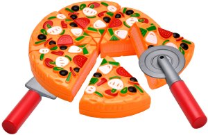 Pizzu na suchý zips: Pizza je rozdelená na dieliky spojené suchým zipsom, čo deťom umožňuje zábavné „krájanie“.