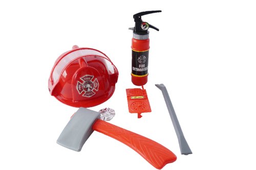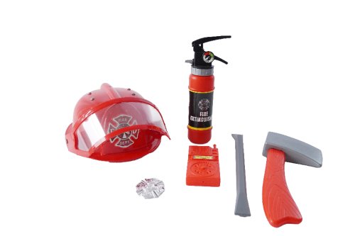 Sada obsahuje základné pomôcky skutočného hasiča. Helma so štítom na oči, sekeru, telefón, hasiaci prístroj, odznak….