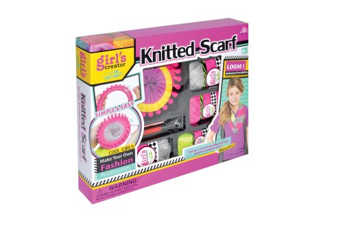 Pletací stav Scarf design - navrhni a vyrob si vlastný šál alebo iné doplnky. Použi dodané farby vlny alebo ich nahraď tvojimi obľúbenými odtieňmi.
