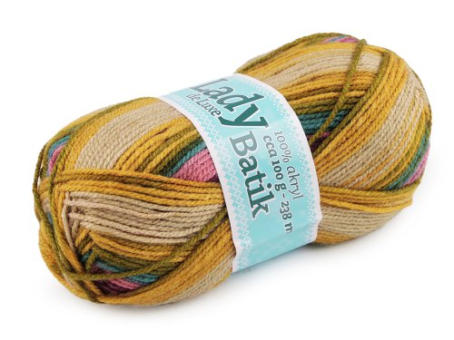Pletacia priadza Lady Batik de Luxe dodá vašim výrobkom pútavý a originálny vzhľad vďaka svojmu melírovanému efektu. Je mäkká a príjemná na dotyk. Môžete z nej upliesť či uháčkovať svetre, šály, nákrčníky, čiapky, vesty a pod. Veľkosť ihlíc: 4 - 4,5 Veľkosť háčika: 4 - 4,5