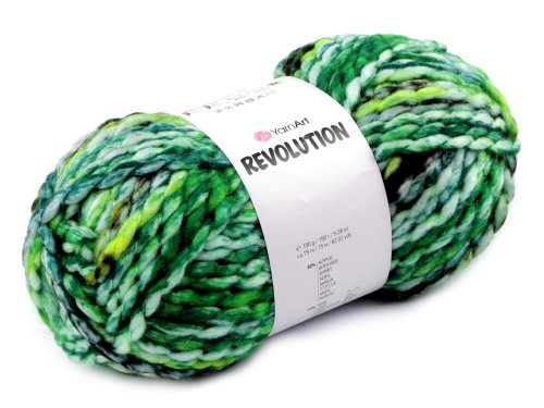 Melírovaná priadza Revolution má veľmi zaujímavú štruktúru. Je opletená prídavnou tenkou priadzou, ktorá vytvára originálny efekt - jemné vlny. Vďaka podielu vlny je mäkká a hrejivá. Môžete z nej vyrobiť svetre, šály, vesty, čiapky, plédy a pod. Veľkosť ihlíc: 9 Veľkosť háčika: 9