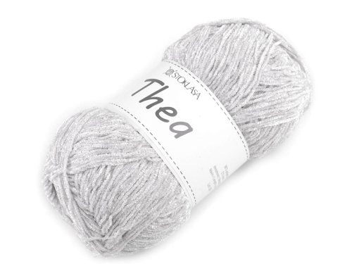 Ženilková priadza Thea je pretkaná trblietavým lurexom, ktorý jej dodáva iskru. Môžete z nej upliesť či uháčkovať rôzne dekorácie, postavičky aj doplnky. Veľkosť ihlíc: 2,5 - 3 Veľkosť háčika: 2,5 - 3