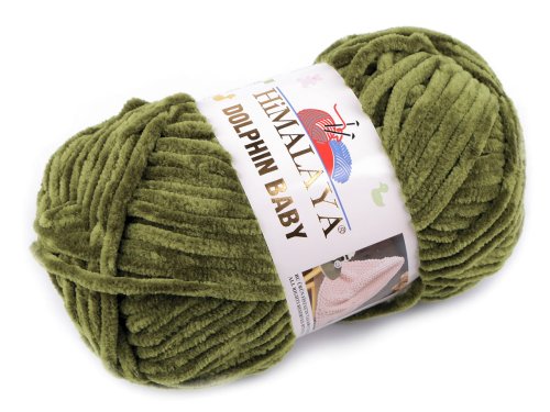 Pletacia ženilková priadza Dolphin Baby 100 g - (80361) zelená khaki