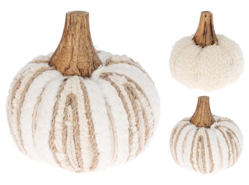 Ručný vzhľad, hebká bavlna, tlmené tóny bielej a hnedej – tieto pletené tekvice sú štýlovou alternatívou ku klasickej keramike. Skvele vyzerajú v duete aj v skupine s prírodnými materiálmi. Tovar je dodávaný v mixe. Doručovaný tovar je vyberaný náhodne a nie je možné vybrať konkrétne prevedenie.