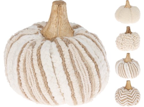 Ručný vzhľad, hebká bavlna, tlmené tóny bielej a hnedej – tieto pletené tekvice sú štýlovou alternatívou ku klasickej keramike. Skvele vyzerajú v duete aj v skupine s prírodnými materiálmi. Tovar je dodávaný v mixe. Doručovaný tovar je vyberaný náhodne a nie je možné vybrať konkrétne prevedenie.