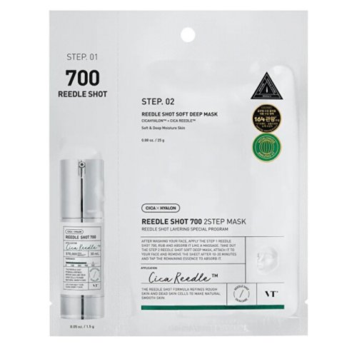 Trápi vás mdlá, unavená alebo nerovnomerná pleť? Dvojfázová maska Reedle Shot 700 ponúka riešenie na obnovenie sviežosti a vitality pokožky. Prvý krok s aktivačným sérom využíva mikroihličkovú technológiu, ktorá podporuje lepšie vstrebávanie aktívnych látok do hlbších vrstiev pleti. Druhý krok v podobe plátennej masky obsahuje peptidy, niacínamid, kyselinu hyalurónovú a centellu na hydratáciu, upokojenie a zlepšenie elasticity. Kombinácia týchto zložiek pomáha zjednotiť tón pleti a zlepšiť jej štruktúru. Pleť po použití pôsobí pevnejšia, hladšia a viditeľne rozžiarená.