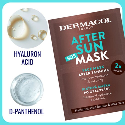 Pleťová maska po opaľovaní poskytuje upokojenie podráždenej pleti po slnení. Maska má osviežujúci a chladivý efekt na horúcu pleť vystavenú dlhému pobytu na slnku, posilňuje ochrannú bariéru, pomáha zabrániť poškodeniu pleti UV žiarením, hydratuje a uľavuje od začervenania a zároveň predchádza strate elasticity pleti a vzniku vrások.