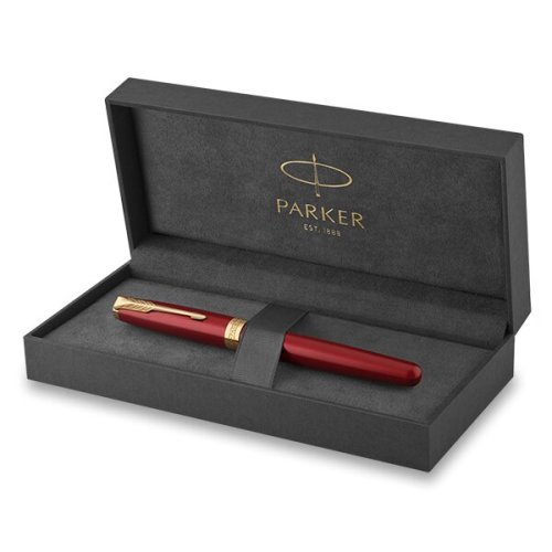 TIP: K plniacemu peru by ste mohli využiť konvertory Parker s fľaštičkovým atramentom alebo atramentové bombičky Quink., Nadčasová elegancia modelu Sonnet, jeho vycibrený štýl i rozmanité povrchové úpravy skvele nadväzujú na dizajnérsku tradíciu značky Parker. 18 karátového zlata, ideálneho rozloženia hmotnosti pera i starostlivého zostavenia jednotlivých, celkom 17 rôznych dielov. Modelová, rada Sonnet je skutočne nadčasová a zároveň vždy aktuálna. tlak vytvára jemnú linku. Veľmi obľúbený, vhodný pre užívateľov so štandardným rukopisom., M - Stredný hrot (Medium) - Priemerný tlak a šírka linky Vhodný pre užívateľov, ktorí majú radi maličko silnejšiu linku.