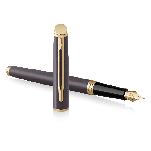 Plniace pero Waterman Hémisphére The Understated Edit Lava Black GT s telom a viečkom z nerezovej ocele povrchovo upravenej metalickým lakom vo farbe lava black.