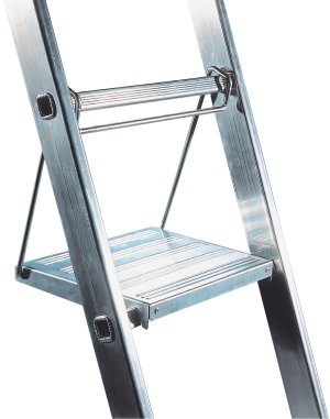 Úzka nášľapná plošina k rebríku VHR, ktorá zásadným spôsobom vylepšuje komfort chodidiel spoločne s rovnováhou pri dlhšom pobyte na rebríku.