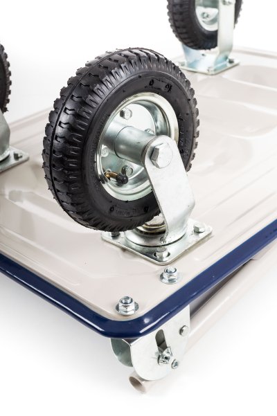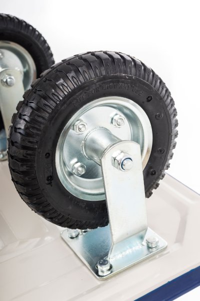 Manipulačný plošinový vozík G21 má 4 pevné kolieska z odolnej tvrdenej gumy, ktorá nezanecháva čierne stopy a nenaruší čistý povrch podlahy v sklade, na predajni ani v domácnosti. Je preto vítaným pomocníkom aj pri sťahovaní .
