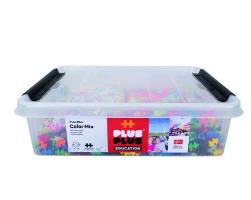Vďaka praktickému úložnému boxu je skladovanie a prenášanie stavebnice veľmi pohodlné. Box má rozmery 40 × 30 × 13 cm a je vyrobený z priehľadného plastu, ktorý umožňuje ľahký prehľad o obsahu. Box je opatrený pevným vekom s čiernymi úchytmi, ktoré zaisťujú bezpečné uzavretie a ochranu dielikov pred stratou. Na prednej strane boxu je výrazná etiketa s logom Plus-Plus, informáciami o počte dielikov a farebných kategóriách, a tiež označením, že výrobok je vyrobený v Dánsku.