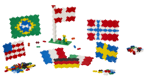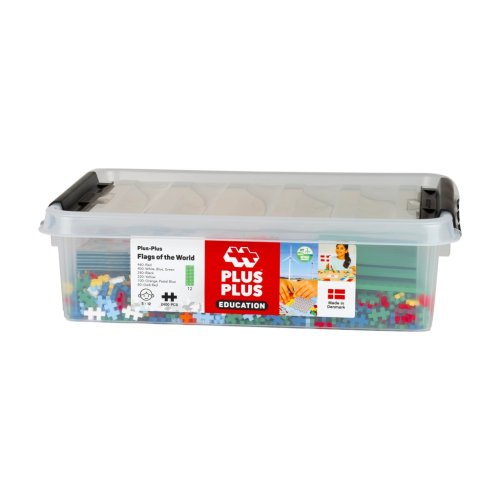 Praktický úložný box obsahuje 2400 dielikov Plus-Plus a 12 zelených podložiek. Súčasťou je aj brožúra s konkrétnymi šablónami vlajok a úlohy pre deti. Vyrobené v Dánsku, bez ftalátov, recyklovaný plast, ľahká údržba. Rozmer boxu 40×30×13 cm. Ideálne pre kolektívy. Vhodné od 5 rokov.