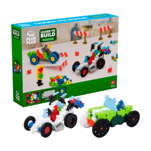 Kreatívna súprava PLUS-PLUS Nauč sa stavať Autá obsahuje celkom 500 dielikov 9 koliesok, z ktorých môžete podľa podrobného návodu postaviť rôzne dopravné prostriedky – autá, motorky, trojkolesové autá a mnoho ďalšieho. Súčasťou balenia sú aj 2 podložky a návod.