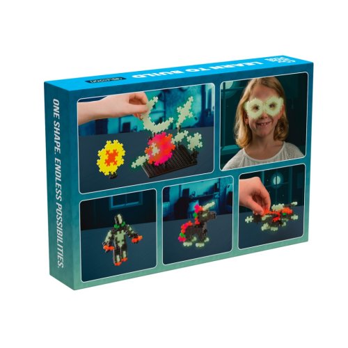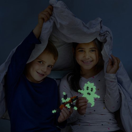 Kreatívna sada PLUS-PLUS Nauč sa stavať Svietiace v tme obsahuje celkom 500 dielikov, z toho 140 svietiacich v tme, z ktorých môžete podľa návodu postaviť rôzne strašidelné postavy a duchmi v rôznych dizajnoch a farbách. Použite svoju fantáziu a postavte aj vlastné Plus-Plus designy! Vhodné pre deti od 5 rokov.