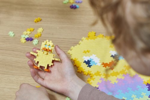 Kreatívna súprava PLUS-PLUS Skladaj podľa čísel Kuriatko obsahuje 250 dielikov. Vytvoriť je možné roztomilé kuriatko vyliezajúce z vajíčka, prípadne trojrozmerné kuriatko a dvojrozmerné vajíčko. Obrázky môžete využiť ako dekorácia.