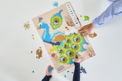 Kreatívna súprava PLUS-PLUS Skladaj podľa čísel Páv obsahuje 800 dielikov. Postavte krásne farebnú mozaiku páva, skladajte farby podľa čísel. Obrázky môžete využiť ako dekoráciu alebo stavať nové vlastné vzory.