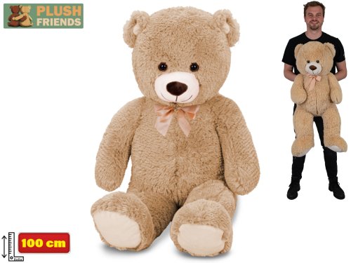 Plush Friends medveď plyšový 100 cm svetlo hnedý s mašľou