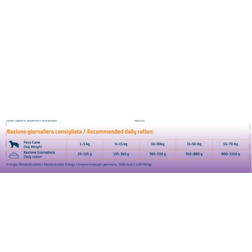 Zloženie: dehydrované živočíšne bielkoviny 30% (z toho jahňacie 4%), tvrdá pšenica, kukurica, ryža, oleje a tuky, karob, vitamíny a minerály.